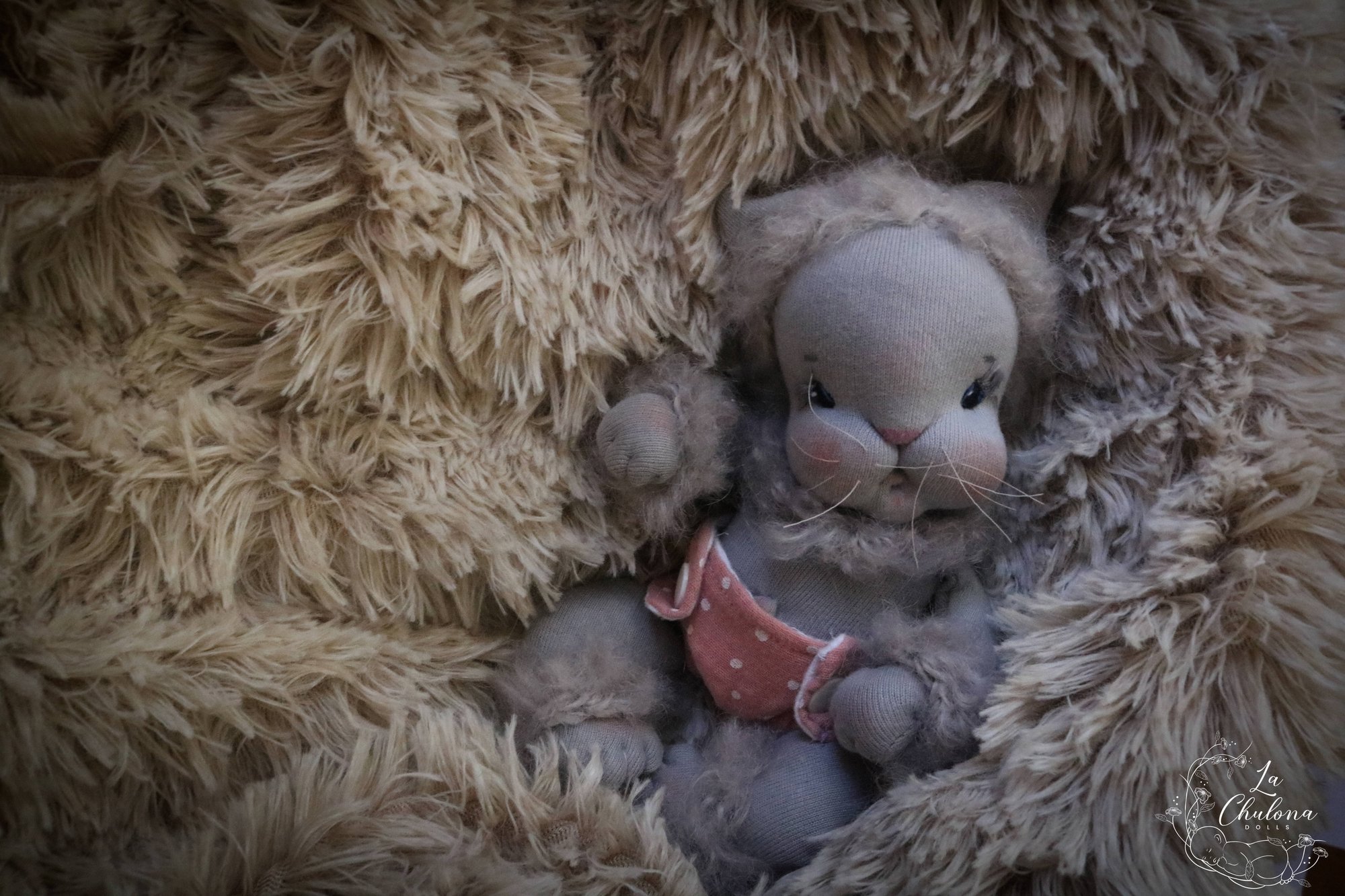 Luna is a 7.5 inch natural fibers hybrid kitten doll. Skin is organic cotton interlock hand dyed to a gray color. Limbs and torso are firmly stuffed with clean wool. Head is floppy. Legs and arms are floppy on the shoulders and thighs. Arms are sewn directly to the torso three times for extra strength. Legs and torso are one piece. The head is firmly needle felted, soft sculpted on the mouth, nose, and eyes. Her face was hand embroidered with DMC cotton embroidery floss (eyelashes are delicate please do not pull them). This doll is fully soft sculpted. Her fur is a hand crocheted wig cap made out of a mohair yarn. She has fur on her wrists, ankles, neck, and head. The fur has been hand sewn to her body and hair, except for the neck, where it is just tied. This hair can be gently brushed if needed. Ears are hand sewn to the head as well. Nose and eyebrows were hand painted with colored pencils, that is why the doll is spot clean only. Blushing was made with a red beeswax crayon and it is not permanent. You will get a little piece of cloth with some blush so you can retouch it if necessary.